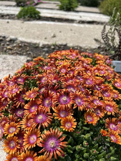 For those of you who face extreme heat and drought conditions, plant selection is key. Hardy ice plant makes a great small scale groundcover in such places, or any other spot where you need a durable plant that doesn’t require much moisture to thrive. We love Fire Spinner ice plant for its fiery orange and magenta blooms with a white center glow. This plant blooms most prolifically in late spring to early summer but continues to produce more flowers sporadically over much of the summer. See it in action here. Perennial in zones 5-8, full sun, 2-3” tall.