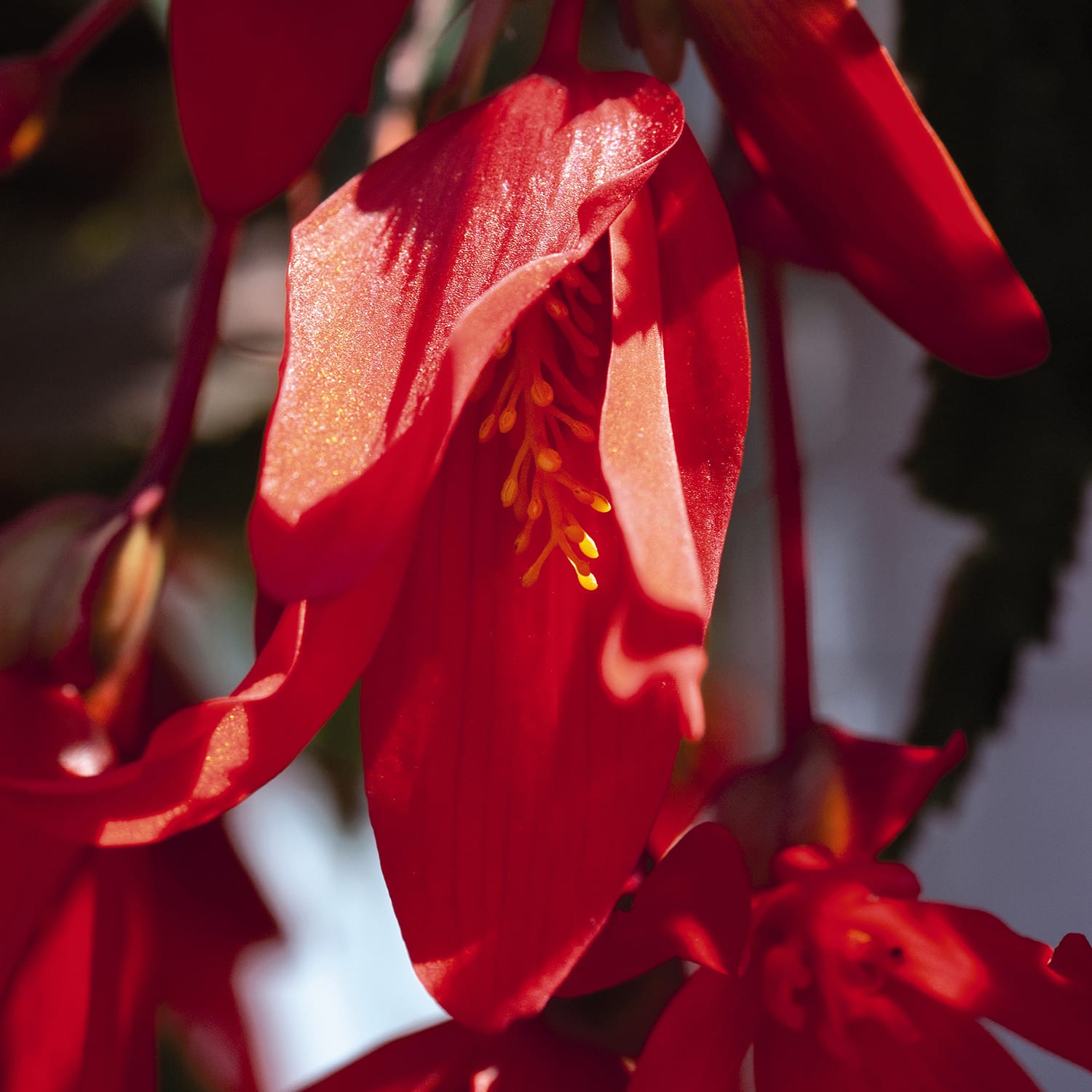 (Begonia) Cascading beauty, a bounty of vivid shades. The flower power of SANTA CRUZ® Begonia is breathtaking. The deep orange red blossoms look like tear drops that cover the deep green foliage. In the early stages of growth, the airy foliage creates an upright habit, as the plant matures the flowers and foliage start to drape over creating a beautiful tropical look. The 12-16″ cascading habit of SANTA CRUZ® make this a great choice for hanging baskets and planters. Unlike most Begonias, SANTA CRUZ® begonia is drought tolerant can be grown in full sun to full shade locations. It hold up well after a rain. Enjoy the flutter of the hummingbird as it comes in for a tasty treat.