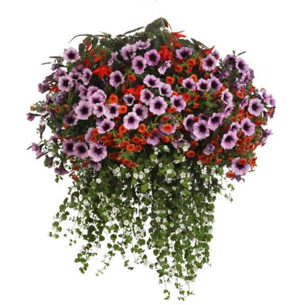 Four in One Plant Combination! Enjoy the beautiful colors of Supertunia® Bordeaux, Superbells® Dreamsicle, Santa Cruz® Sunset and Snowstorm® Giant Snowflake™. The beauty of annuals is their quick growth rate and longevity of blooms, color that lasts all summer. This collection includes 4 – 4.5″ potted plants, hanging basket or decorative container not included. For one collection we recommend a 12″ wide container with a depth of at least 8″. If you are looking to do a larger planter you may be interested in adding one or more of our ‘Thrillers’ to your design.
