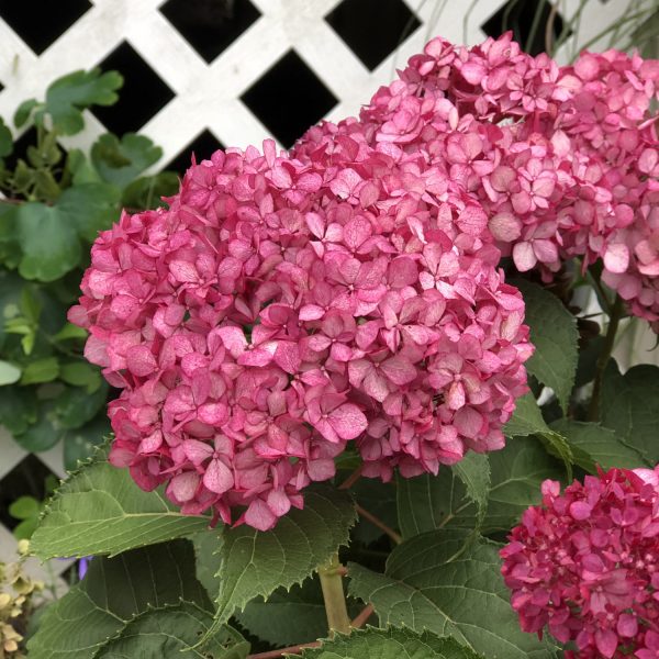 (Hydrangea- Smooth) If you love INVINCIBELLE® Ruby or Spirit II, but are looking for a shorter pink hydrangea, you may consider INVINCIBELLE MINI MAUVETTE®. Standing 2.5- 3 feet tall and wide, this hydrangea is a compact mound of beauty. Large raspberry pink blooms appear mid summer and as they age, they appear purplish pink in color and then purple green. With strong stems and a great habit, this shrub is a repeat blooming hydrangea that blooms off the current season growth. Planted in full sun it is the perfect size plant for containers, borders, foundation plantings and in the garden. Hydrangea INVINCIBELLE MINI MAUVETTE® is a PROVEN WINNERS® COLORCHOICE® Flowering Shrub.