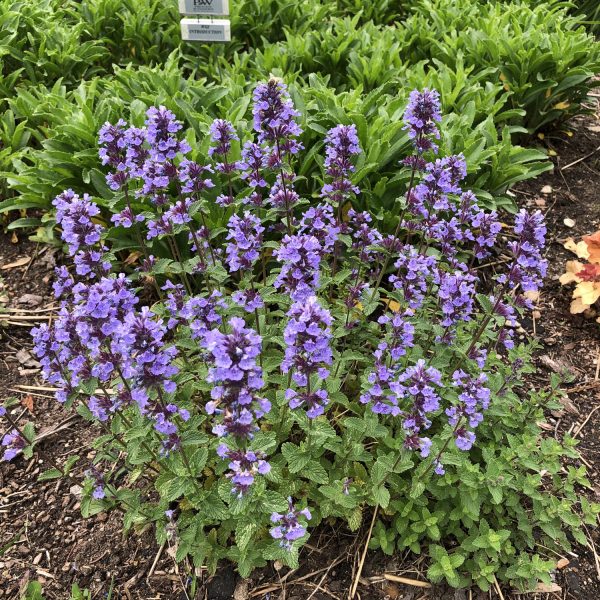 (Catmint) Enjoy catmint in a new and improved habit. ‘Purrsian Blue’ Nepeta is similar to the new ‘Cat’s Meow’ variety with the exception that it has a more compact habit. ‘Purrsian Blue’ is a bright blue color and the flowers are spaced very closely together on each stem to bring you a very floriferous plant. The nice mounding habit of ‘Purrsain Blue’ starts off as a nice round clump, and by year two it explodes nearly doubling in size to a tidy 2 foot mound. Nepta is a long blooming perennial with color showing from early summer to late fall, and you may trim as desired. Catmint ‘Purrsian Blue’ is a gardeners dream come true. The nice compact tidy habit is accompanied by being drought tolerant, easy to care for, and deer resistant. Snip a little bit and give it to your cat, he will be your forever friend.