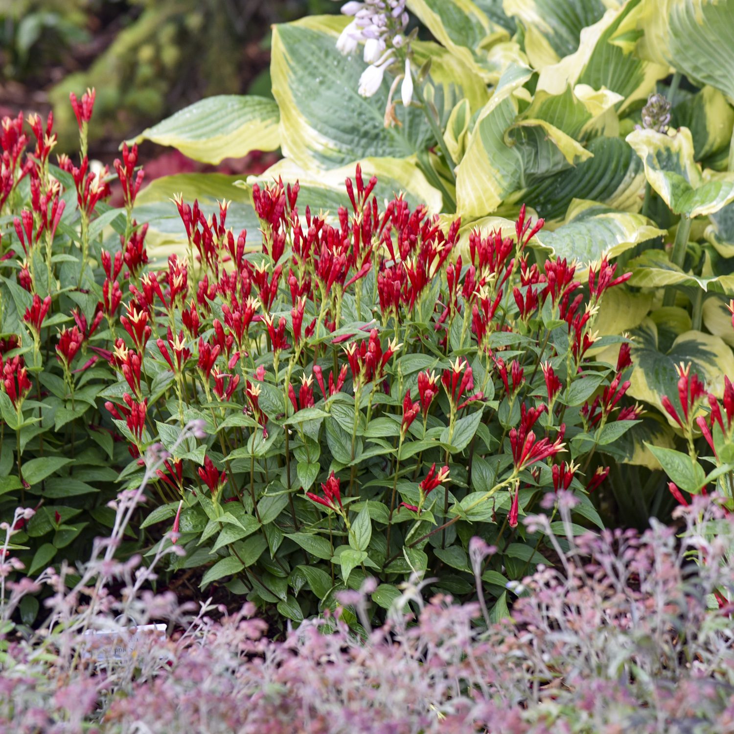 (Indian Pink) We are so excited to have Spigelia in the Proven Winners collection! Spigelia ‘Apple Slices’ features the darkest red blooms to date. These wine-red tubular blooms are upward-facing and have yellow throats. Blooming early to midsummer, these native perennials are a feast for hummingbirds and butterflies. Planted in full sun to part shade locations, it grows to about 20 inches tall and spreads to 18 inches wide forming a nice mound. Hardy in zones 5b- 9, Spigelia ‘Apple Slices’ is the most vigorous so far in our collection. Spigelia can be found in moist, fertile woodland areas in the East, make sure your location has good drainage. This long-blooming perennial adds a nice texture and an intense shade of red to garden beds. Plant in mass or as a specimen for an eclectic look to your garden. This easy-to-grow perennial also makes a great cut flower. Spigelia ‘Apple Slices’ is part of the Proven Winners® Perennial collection.