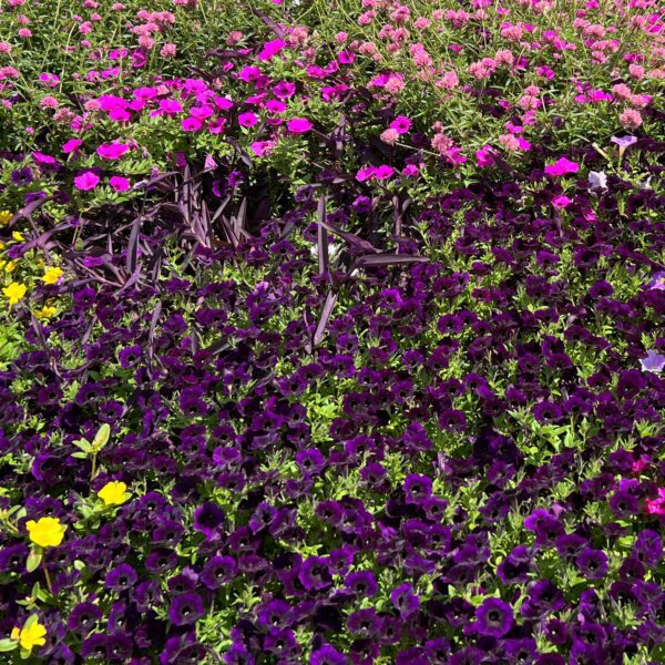(Petunia) Enjoy the deep, rich purple color of SUPERTUNIA MINI VISTA® Midnight. Planted alone or in combination, this Supertunia® is sure to become a perfect pairing for many of your favorite annuals. Standing 6-12 inches tall and spreading/trailing up to 24 inches wide, SUPERTUNIA MINI VISTA® Midnight petunia is a great selection for containers and landscapes. Grown in full sun to part sun locations, MINI VISTA® Midnight is heat tolerant. In the landscape SUPERTUNIA MINI VISTA® Midnight forms a nice spreading mound for season-long color. Fertilize often for best results. The SUPERTUNIA® family of petunias is self-cleaning. What that means is that you do not need to pick at them to keep them looking beautiful all summer. We do recommend fertilizing your SUPERTUNIA® every 1-2 weeks with a water-soluble fertilizer. This helps keep your plants well nourished providing you with loads of color. You may find that mid-season your baskets and planters need a manicure. We recommend trimming your MINI VISTA® Midnight back to approximately the bottom of your hanging basket or container. This will encourage more branching and freshen up your planter. The ‘Mini Vista’ series of SUPERTUNIA® have been bred to flower earlier and have vigorous flower power. The flower form is smaller than The Vista Supertunias® petunias, but the mass of flowers creates a blanket of color in your landscape. Enjoy the hummingbirds and butterflies as they visit your plantings.