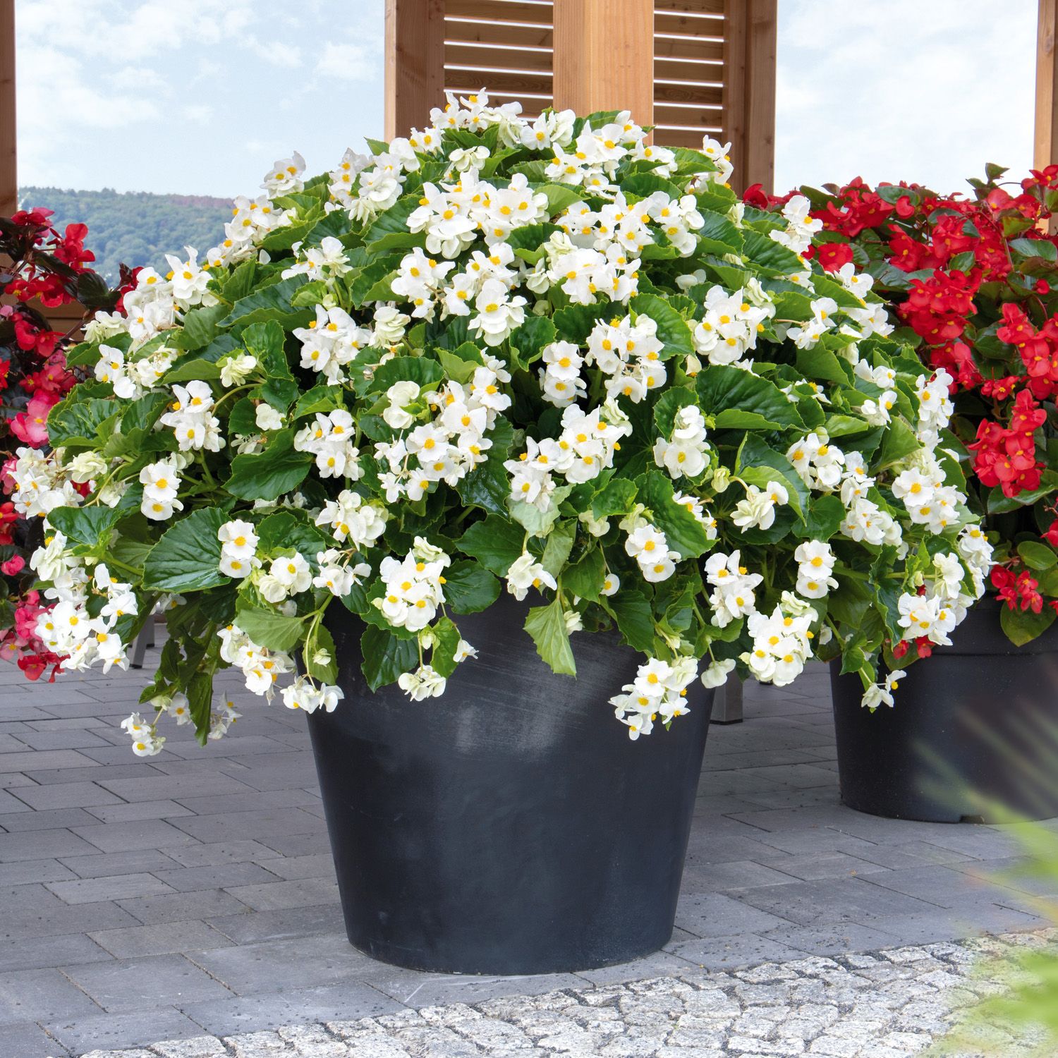 (Begonia) If you are looking for a statement plant for your landscape, check out the beautiful blooms of SUREFIRE® White Begonia. The bright, glossy green foliage is a perfect pairing for the crisp, clean white blooms. This continuous blooming annual is 24 inches tall and wide forming a nice upright mounding habit in the landscape. A strong, upright habit is a must for such a large plant, and this is what SUREFIRE® begonias deliver. Planted in full sun to full shade, SUREFIRE® White Begonia is an easy to grow annual with no deadheading needed. Blooming from spring through fall, it is drought tolerant once established although we do recommend regular watering and fertilizing. This specimen plant is great not only in the landscape but also in containers and hanging baskets.